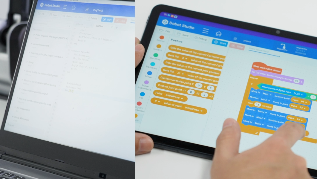 Los cobots Dobot son fáciles de operar y no requieren ingenieros. El proceso de implementación se reduce un 80 % en comparación con los robots industriales tradicionales. Las tareas de Pegado se pueden programar mediante el método de arrastrar y soltar, y su interfaz gráfica de usuario es sencilla. Cambie fácilmente al uso de cobots para ahorrar costes y mejorar la eficiencia de la producción.