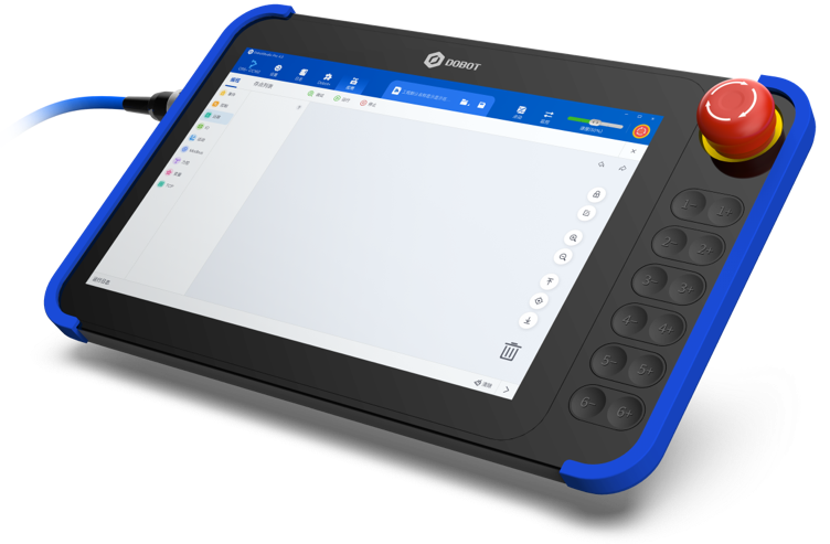 Con un diseño ligero y compacto, el DOBOT Teach Pendant combina estética y ergonomía, ofreciendo un agarre atractivo y cómodo. Su excepcional diseño de interacción garantiza seguridad, flexibilidad y eficiencia en la depuración del robot, brindando una excelente experiencia al usuario.