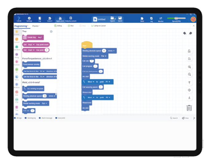 Utiliza programación en bloques, funcionalidad plug-and-play y configuración rápida para un proceso de soldadura sencillo.